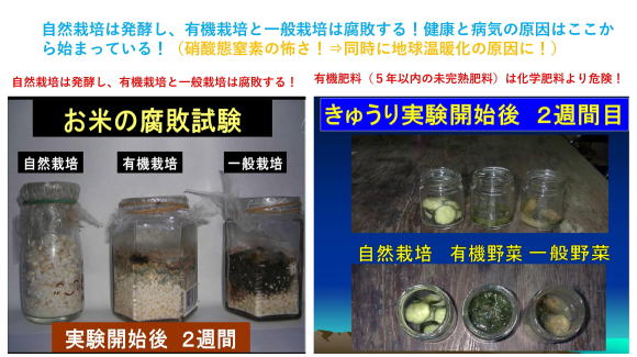 有機栽培とは、農薬・化学肥料は使わず、 主に牛糞や鶏糞などを発酵させた堆肥を使用して栽培する方法。 自然栽培は、農薬・化学肥料を含む一切の有機肥料も使わない栽培方法。